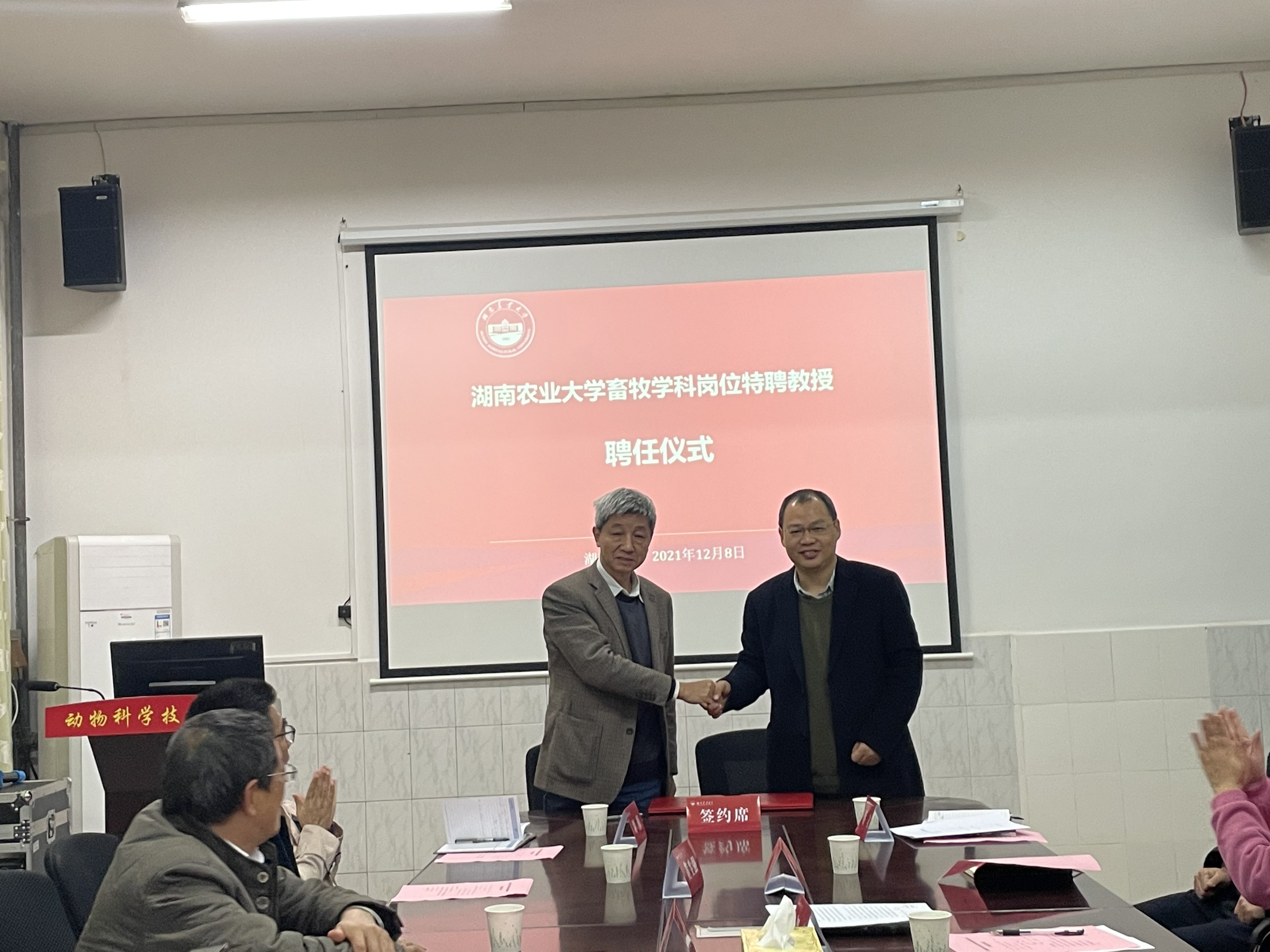 12月8日上午,畜牧学科岗位特聘教授聘任仪式在太阳成tyc33455cc举行。畜牧学科带头人中国工程院院士印遇龙、人事处负责人、太阳成tyc33455cc班子成员、教师代表参加,仪式由动科院院长贺喜主持。