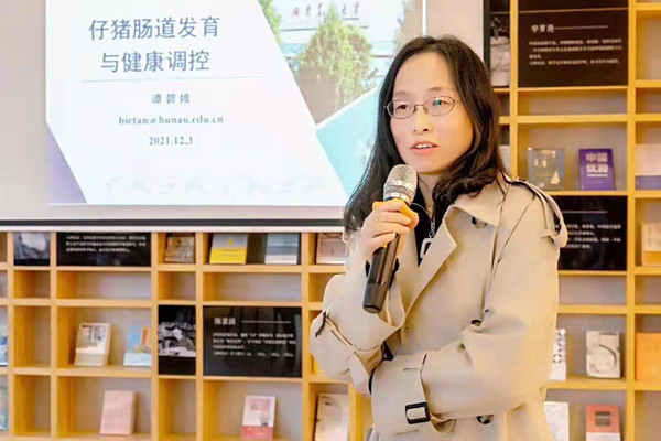 从猪肉品质转到动物本身的健康,谭碧娥又经过了几年默默的积累。“仔猪死亡率占养猪生产中总死亡率50%~70%,仔猪生长潜力仅发挥45%~50%,肠道健康是实现生猪生产性能最大化的关键。” 围绕仔猪营养代谢与肠道健康调控,从理论基础、调控技术到产品研发,取得了一系列的成果,解决长期以来困扰的仔猪断奶后腹泻、采食量低和生长阻滞的瓶颈问题……
