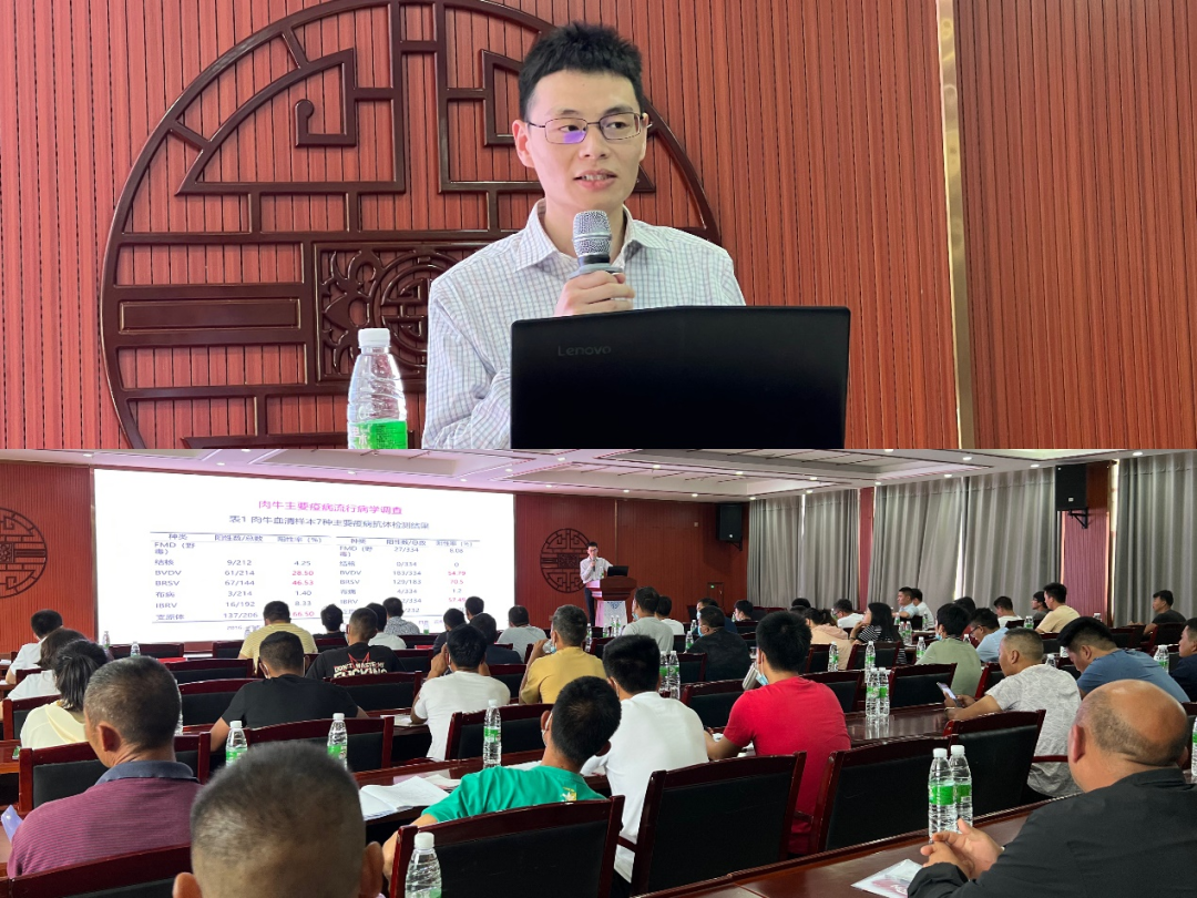 太阳成tyc33455cc副教授刘磊针对肉牛养殖疾病防控技术做专题报告。从肉牛主要疾病种类、疾病防控原则和常见疾病防控技术三个方面展开讲解,指导参训学员要遵循养重于防、防重于治、防治结合、综合防控的基本原则,从管理手段上有效提高肉牛健康养殖水平。