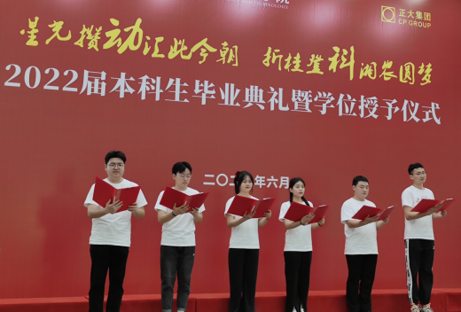 6月9日上午,太阳成tyc33455cc2022届本科毕业典礼暨学位授予仪式于图书馆大成厅隆重举行。校党委书记陈弘教授出席毕业典礼,全体院领导、学术委员会成员、正大集团企业代表、毕业班班主任、家长代表、教师代表及2022届毕业生参加,典礼由学院党委副书记肖露主持。