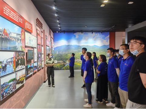 沙洲村“半条被子的温暖”专题陈列馆里,博士团师生们认真聆听讲解员讲述红军长征途中女红军裁剪半条棉被给老百姓避寒取暖的故事。讲解员饱含深情,故事感人至深,真实还原了共产党领导下的红军为群众做实事为百姓谋幸福的伟大形象,让博士团师生们深刻体会到共产党为群众服务的革命宗旨和心系人民的责任感。