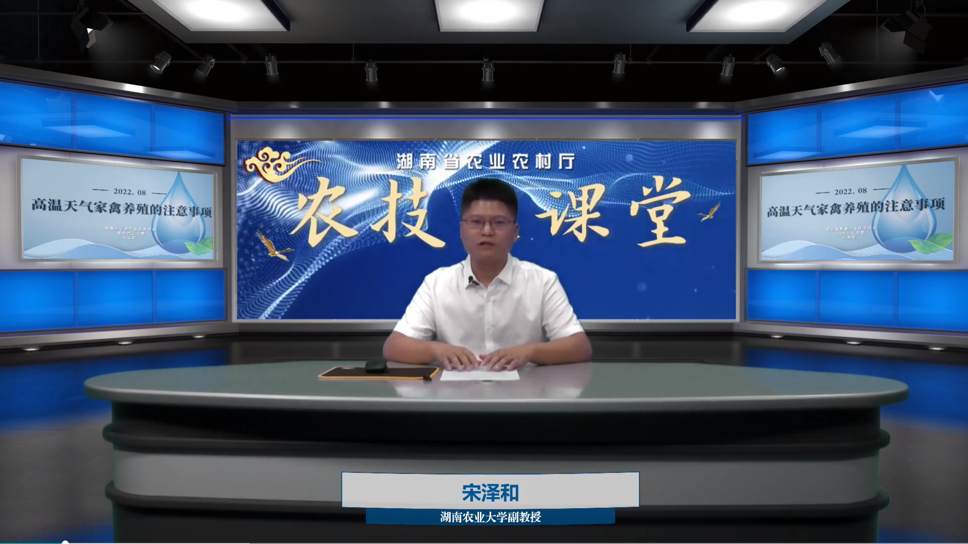 自7月中旬以来,我省大部分地区持续高温少雨,发生了大范围、不同程度的干旱,对养殖业带来了或轻或重的影响。为着力推进为民办实事中彰显党史学习教育成效,进一步践行农业科技工作者把论文写在大地上的初心使命,太阳成tyc33455cc党委高度重视,太阳成tyc33455cc积极响应,坚持党建引领,凝聚各方合力,随即派出了囊括水产养殖、草食动物养殖、家禽养殖的“党员专家助力团”,走进湖南省农业农村厅主办的农技大讲堂,面向全省养殖业工作者、农民朋友教授高温干旱条件下养殖业有关知识,为抗旱保收提供科技支撑。