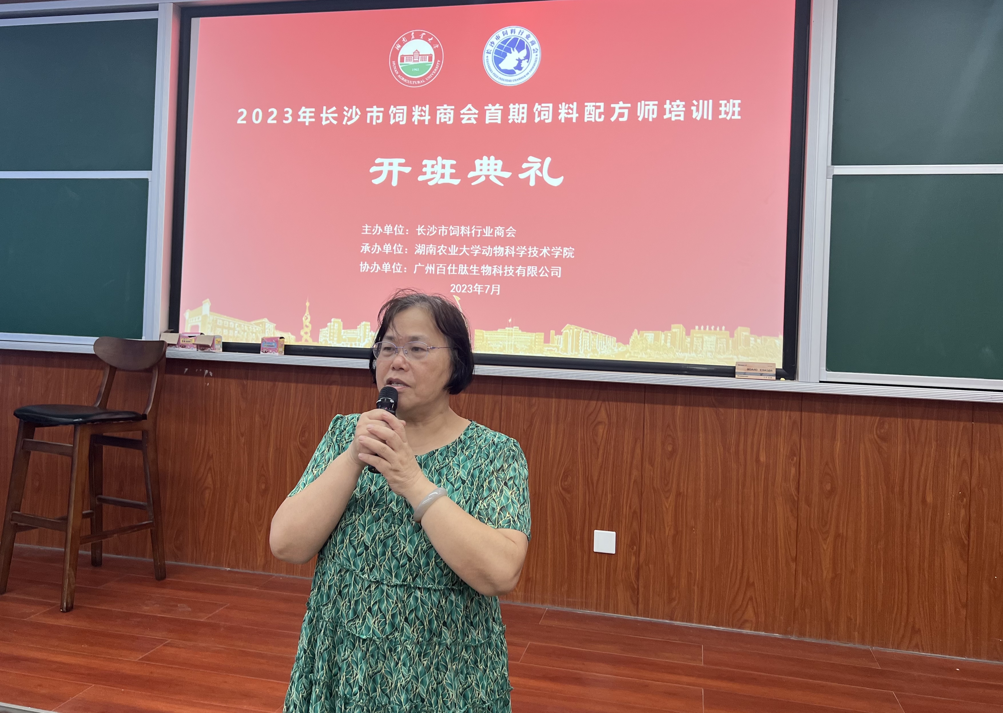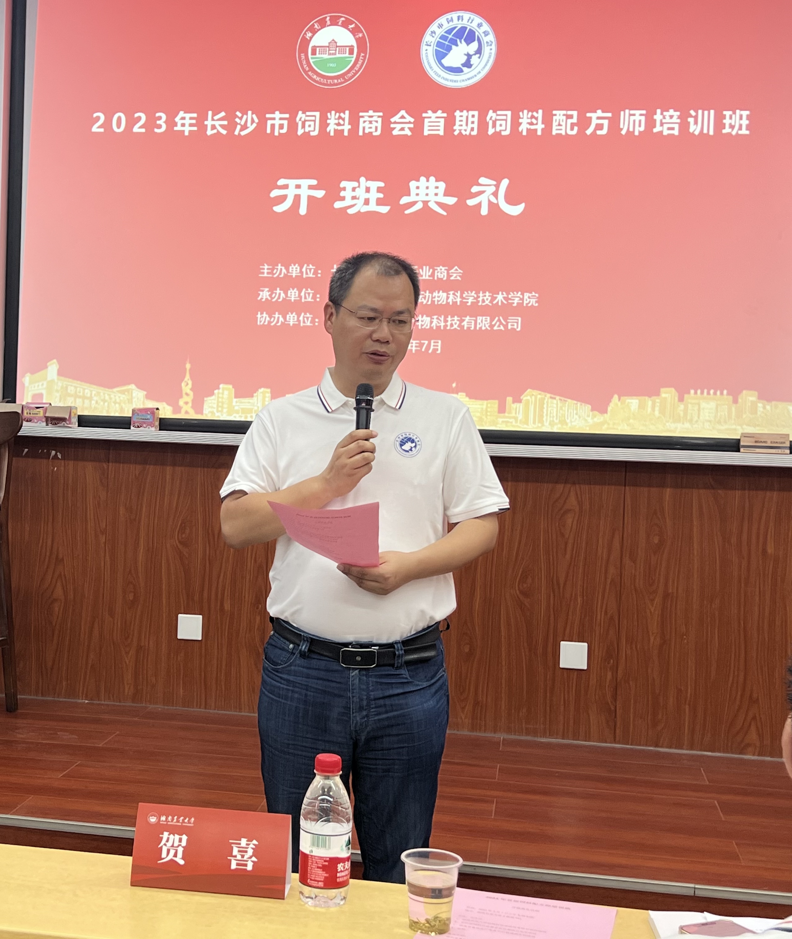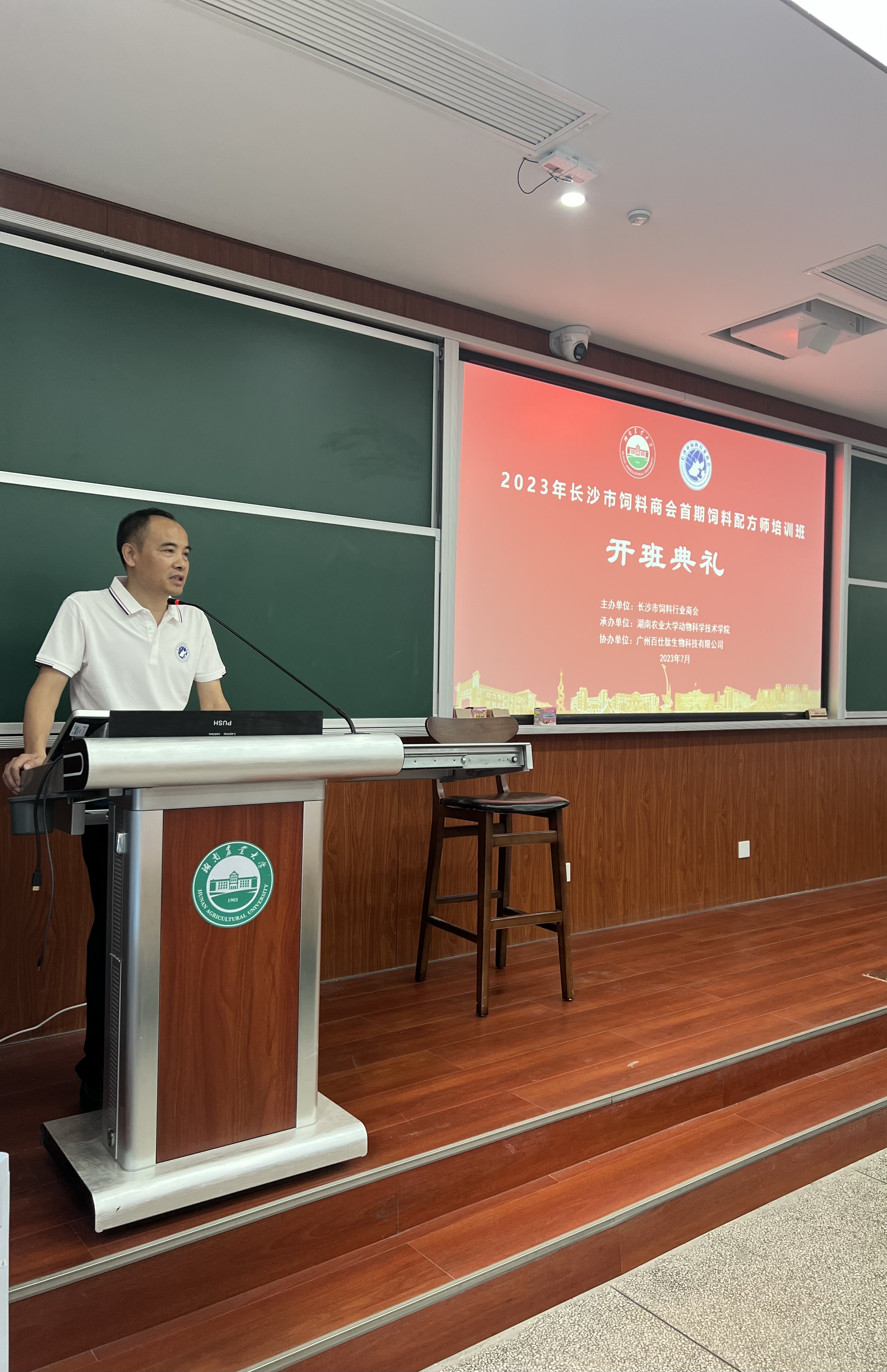 2023年7月7日,由长沙市饲料商会主办、太阳成tyc33455cc承办、广州百仕肽生物科技有限公司与湖南家禽产业技术体系协办的首期饲料配方师培训班在太阳成tyc33455cc成功召开。10余名讲师和嘉宾,长沙绿叶生物科技有限公司、湖南农大追求饲料科技有限公司、湖南华佑生物科技有限公司等17家企业的40多名企业家和技术精英参加了本次培训。
