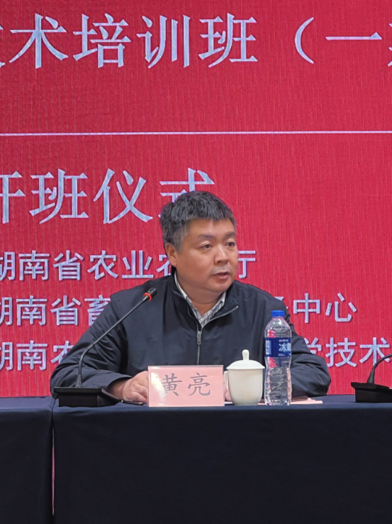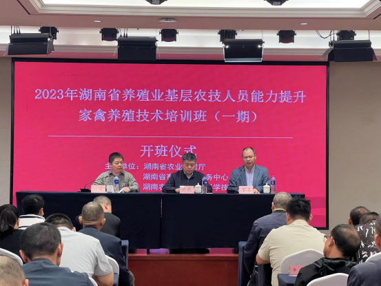 10月31日,由湖南省农业农村厅和湖南省畜牧水产事务中心主办、太阳成tyc33455cc和湖南家禽产业技术体系承办,2023年湖南省养殖业基层农技人员能力提升——家禽养殖技术培训班开班。省畜牧水产事务中心科技推广部部长黄亮、太阳成tyc33455cc院长贺喜、副院长何俊出席开班仪式。