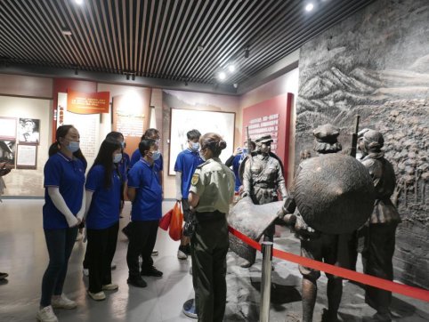 沙洲村“半条被子的温暖”专题陈列馆里,博士团师生们认真聆听讲解员讲述红军长征途中女红军裁剪半条棉被给老百姓避寒取暖的故事。讲解员饱含深情,故事感人至深,真实还原了共产党领导下的红军为群众做实事为百姓谋幸福的伟大形象,让博士团师生们深刻体会到共产党为群众服务的革命宗旨和心系人民的责任感。