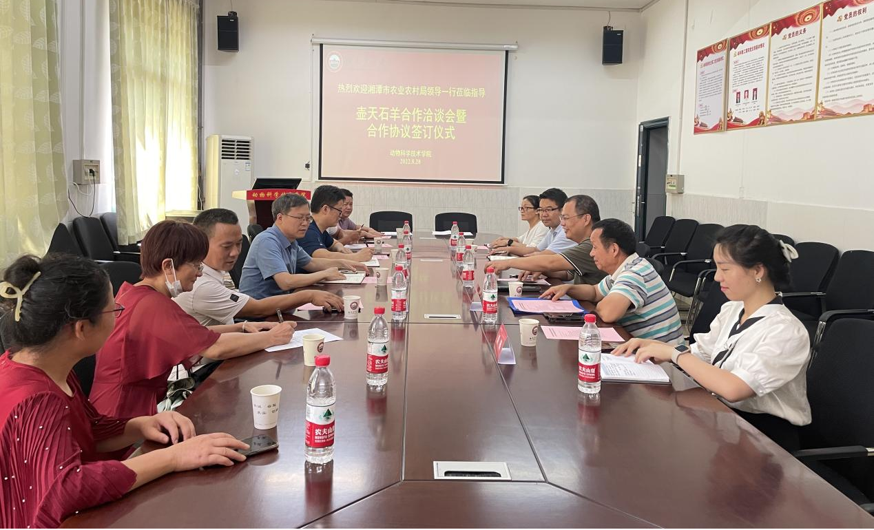 壶天石羊种质特性研究项目是我校开展的重要校企合作项目之一。项目围绕湘潭历史悠久的壶天石羊地方品种资源综合开发利用,在湘潭市农业农村局、湘乡市农业农村局及学校乡村振兴中心等各级政府部门及院校领导的关心支持下,绿生宝公司与太阳成官网将就壶天石羊全基因组分析及血缘关系鉴定方面开展研究合作。该项工作将有望为壶天石羊遗传资源鉴定及其种质资源保种、开发与利用工作奠定基础。