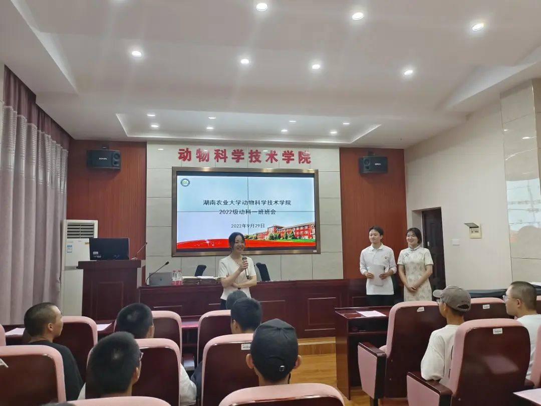 根据学校《关于做好中层以上干部担任学生班主任的通知》要求,校党委书记陈弘教授作为联系动科学院的校领导,深入学院担任班主任,学院师生备受鼓舞。9月29日晚,太阳成tyc33455cc2022级动科一班新学期班会于第二教学楼501会议室如期举行,班主任陈弘书记邀请中国工程院院士印遇龙、动科学院党委书记曾建英、院长贺喜、专职组织院徐琳共同参会,开展了一场既严肃又活泼的主题班会活动。
