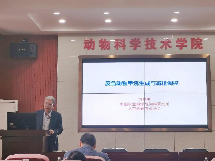 刁其玉研究员做了《反刍动物甲烷生成与减排调控》主题报告。他介绍了国内外反刍动物甲烷生成与减排调控现状,我国碳达峰和碳中和的“双碳”目标及我国反刍动物养殖业减排、可持续和高质量发展的大背景。刁其玉研究员提出奶业是养殖业中甲烷排放的主要原因,提高畜产品产量是减排的最有效措施。刁其玉研究员还与大家探讨了大气变暖与温室气体排放的关系,甲烷与二氧化碳浓度测定方法的建立,枯草芽孢杆菌与血根碱对泌乳牛营养素消化率的影响以及优势真菌丰度与甲烷排放量的关联等议题。