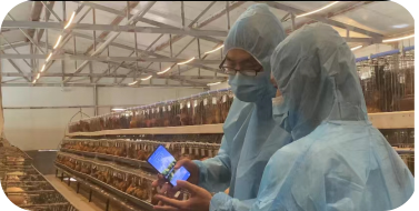 图5 郭松长、曹满湖教授在雪峰乌骨鸡种鸡舍